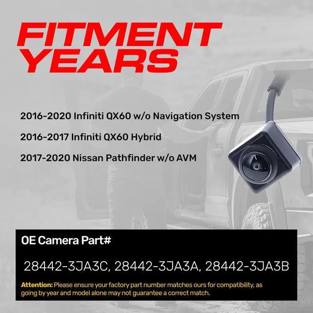 **ATTENTION: Before purchasing, make sure to verify that your part number is an EXACT MATCH to this part number* ^^ [For use with]: Infiniti QX60 w/o Navigation System (2016 2017 2018 2019 2020), QX60 Hybrid (2016 2017) / Nissan Pathfinder w/o AVM (2017 2018 2019 2020) OE Part # 28442-3JA3C (284423JA3C), 28442-3JA3A (284423JA3A), 28442-3JA3B