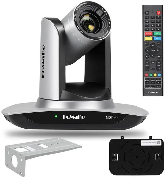 Tips: No built-in microphone. Audio capture requires an external microphone with a power supply. ^^ 3-Year Limited Warranty - Shop with confidence. 30-Day No-Questions-Asked Money-Back Guarantee. Risk-free purchase. Free Online Training - Get started easily. 24/7 Expert Assistance and - Responses within 24 hours (please include your Order ID). If necessary, we can provide remote assistance in setting up. Enjoy our lifetime customer technical support. Your satisfaction is our priority, we have got you covered! ^^ What's in the box. FoMaKo AI Tracking NDI PTZ Camera 20x optical zoom, IR Remote Controller, Wall Mount, Ceiling Bracket, USB Cable, Power Adapter 12V 2A, User Manual.