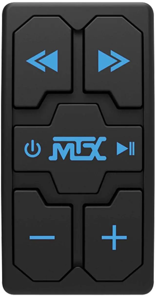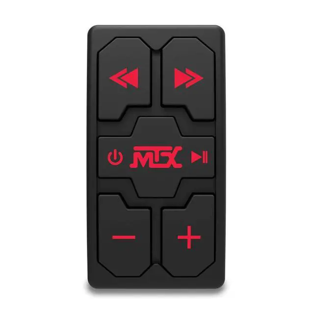 The MTX Audio AWBTSW is a universal Bluetooth receiver and remote control that is designed to work with most Bluetooth enabled devices including iPhone and Android smartphones and tablets. This easy to install and use, all-in-one unit is capable of transforming your Bluetooth enabled mobile device into the center of your vehicles audio system. Designed to mount in standard Carling style rocker switch openings, it is ideal for use in side-by-sides and boats. The AWBTSW is an all-in-one source unit that combines the ability to connect your audio device via Bluetooth or Auxiliary to your vehicle's amplifiers and speakers.