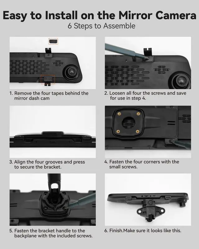 EASY INSTALLATION - Specifically designed for Wolfbox mirror dash cam, it offers effortless installation and disassembly ^^ FIRM INSTALLATION - Compared with the straps, the OEM bracket is more firmly fixed, which reduces the shaking of the dash cam during driving ^^ FIT FOR WHAT - Fit for G840S/G850/G840H/G900/G900PRO/G850PRO/G900 Tripro. Not fit for G930/G890 ^^ WHAT'S IN PACKAGE - 1x OEM bracket, 1x Back Panel, 1x Screws Set ^^ GENTLE REMINDER - Please contact customer service before making a purchase to confirm the compatibility of the bracket with your vehicle model