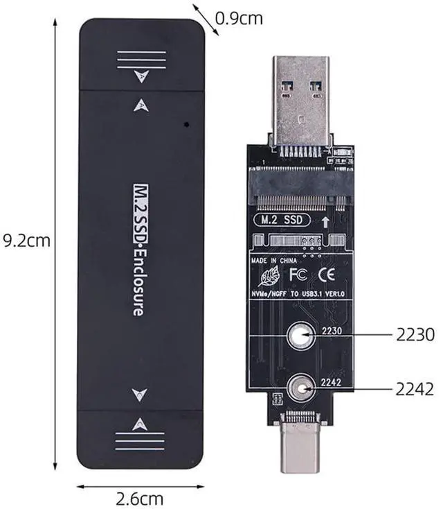 Combo Type-C & USB 3.0 to NVME M-key M. 2 NGFF SATA SSD PCBA Case 2230/2242mm Adapter RTL9210B Chipset