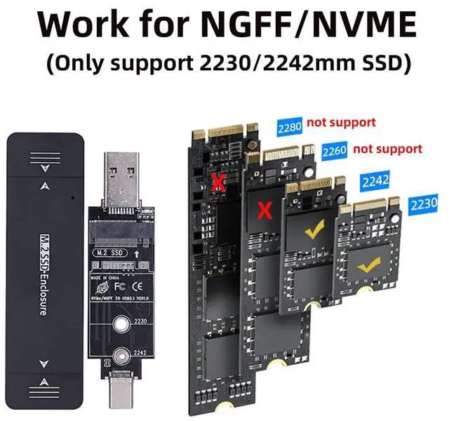 Fit 2230/2242mm NGFF/NVME M. 2 SSD. (The NGFF SSD is not included)