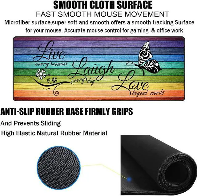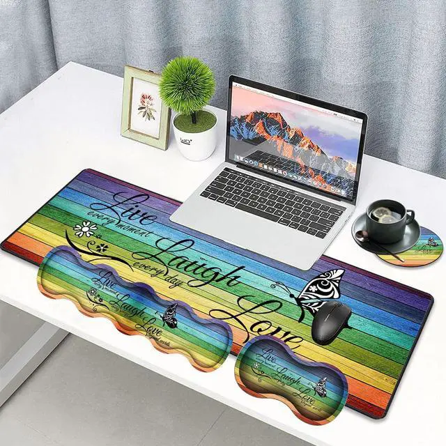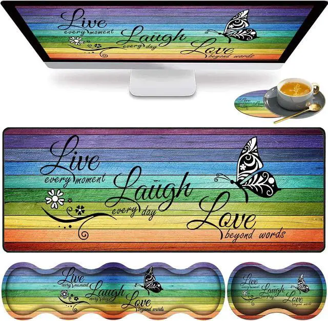 Large Gaming Mouse Pad, Keyboard Wrist Rest pad + Mouse Wrist pad + Coaster Set Extended Waterproof Non-Slip Table mat Suitable for Home Office Learning Games - Glitter Quote Live Laugh Love