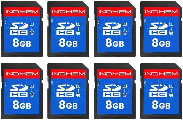 INDMEM SD Card 8GB, 8 Packs Class 10 8GB Flash Memory Card MLC Standard Secure Digital Cards Camera Card