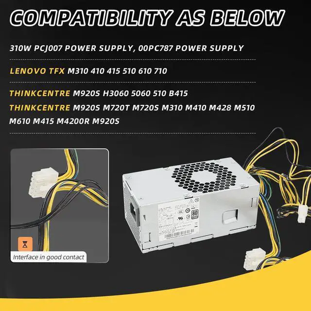 - Compatibility:310W PCJ007 Power Supply, 00PC787 Power Supply Compatible with Lenovo TFX M310 410 415 510 610 710 ThinkCentre M920s H3060 5060 510 B415, ThinkCentre M920s M720t M720s M310 M410 M428 M510 M610 M415 M4200R M920s.
