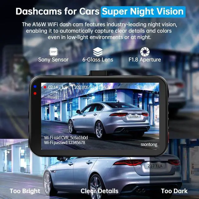 Dash Cam Front and Rear, Dash Camera for Cars WiFi/APP Control Dual Dashcam W/ 64GB Card, 2.5K Dash Cam Front+1080P Rear Car Camera W/Super Night Vision, Loop Recording, G-Sensor, Max Support 256GB