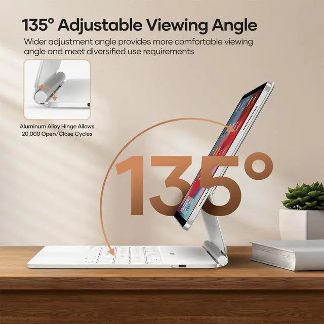 Easy-Set Magnetic Stand: Ultra-strong magnets seamlessly combine tablet and cover; Opens up into an easy-to-use laptop; A wider adjustable viewing angle (0 - 135°) makes scenarios such as reading or immersive viewing more free and comfortable