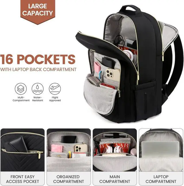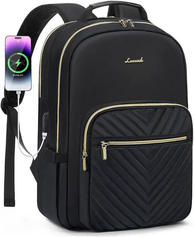 LOVEVOOK Laptop Backpack for Women 15.6 inch,Cute Womens Travel Backpack Purse,Professional Laptop Computer Bag,Waterproof Work Business College Teacher Bags Carry on Backpack with USB Port,Black