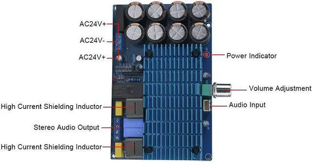MAIN FEATURE---The output uses a red ring high-current inductor to ensure that the sound is crisp and powerful, when using BTL bridging, can output 420W when use 8ohm speaker