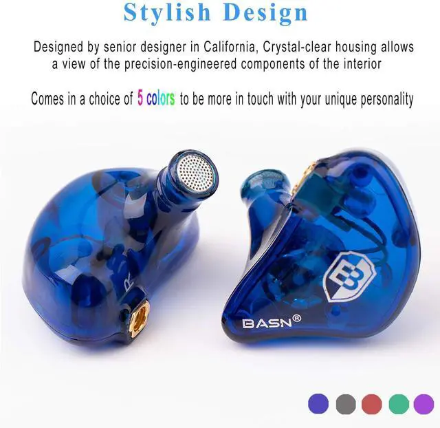 BASN High-Definition in Ear Monitor Headphones for Musicians with Detachable MMCX Earbuds; Dual Dynamic Drivers and Noise-Isolating (Blue)
