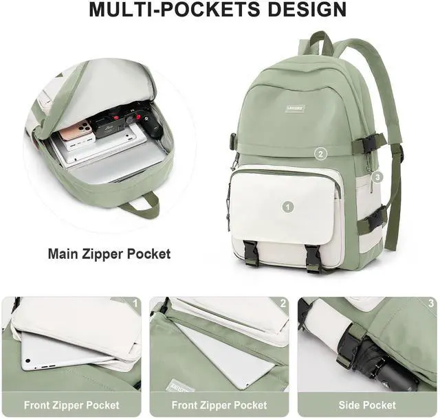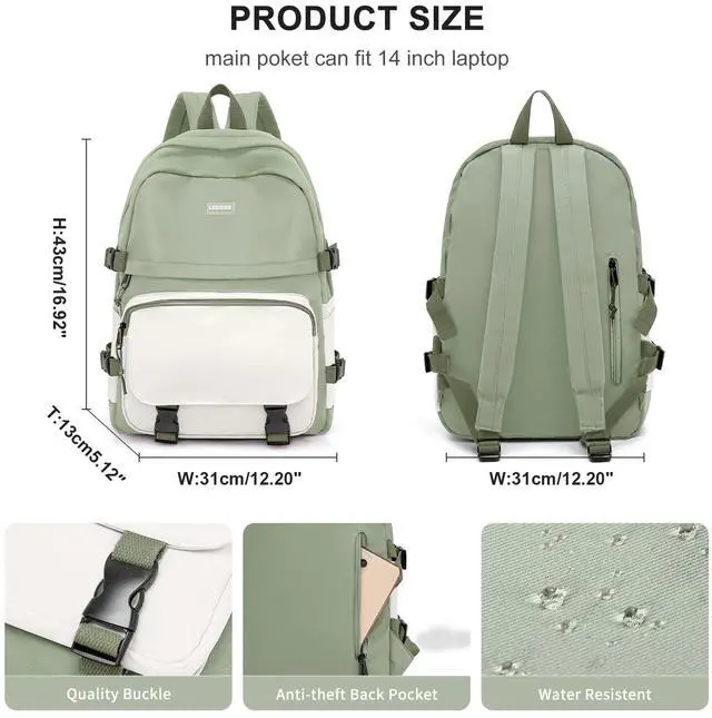 LOTS OF STORAGE SPACE&POCKETS: Separate laptop compartment hold 14inch laptop. Main zippered compartment with file divider, Two front exterior easy access zipper pocket is for your pens, highlighters. Two water bottle pockets on both sides for drinks. One anti-theft zipper pocket for your valuable things.