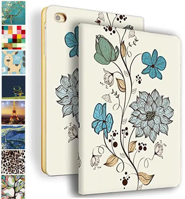 DuraSafe Case for iPad 9.7 Inch 5/6 Gen 2017/2018 & Air 1 / Air 2 [ A1893 A1954 A1822 A1823 A1566 A1567 A1474 A1475 ] Printed Smart Cover Slim Folio, Auto Sleep/Wake - Watercolor Flowers