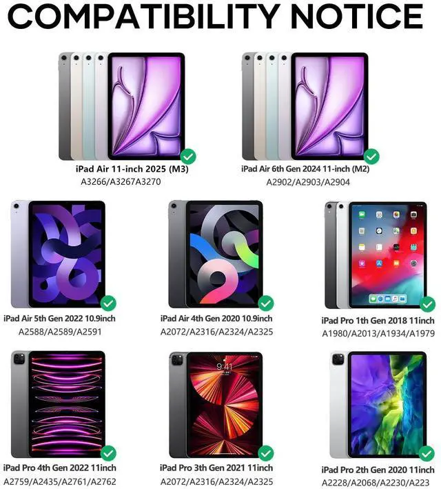 ** 360-Degree Rotating Case** : This innovative case offers advanced protection for your iPad Air 6th generation, iPad Air 5th generation, iPad Air 4th generation or iPad Pro 11-inch. The 360-degree Rotating and Removable feature allows easy access to your device while keeping it secure and stable.