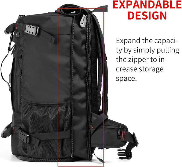 2. Large capacity design: Clothes, mobile phones, wallets, shoes, umbrellas, laptop, water cups, and other personal items can be put in. Separate laptop compartment. Large 60L and Normal size 45L fits in Hiking daily use Travel Airplane Carryon Camping has separate shoes bag. Extra Large65L) size has more storage space than Large size and can be used for Hiking Camping long-distance Travel or Winter Sports Snowboarding (larger shoes bag can fit in snowboarding shoes/helmet...)
