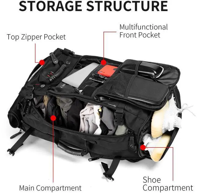 YOUMIAN Travel Backpack Carry On Backpack Durable Convertible Duffle Bag Fit for 15.6 Inch Laptop for Men and Women hiking airplane shoes bag extendable three way uses multiple