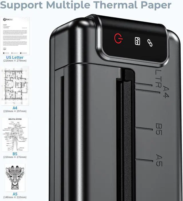 PhoFuta Portable Printers Wireless for Travel,Q302 WiFi Inkless Thermal Printer with Reverse Charging, Phone Printer Supports US Letter/A4/B5/A5, Bluetooth Printers for Home Use Office,300DPI