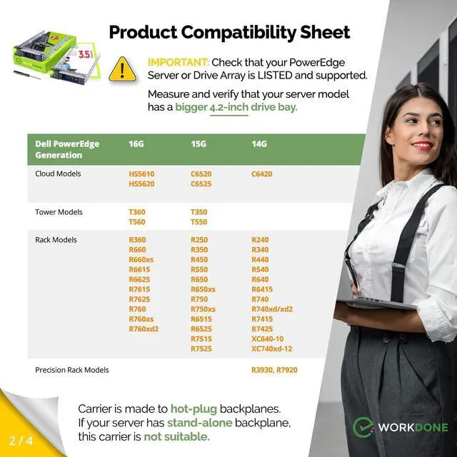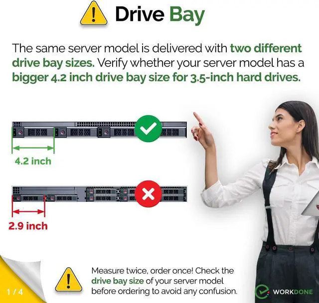 README FIRST: The same PowerEdge server type can have two different sizes of the drive bay. Your server HAS TO HAVE bigger 4.2 inches Hot-Plug Drive Bay. This 3.5-inch Drive caddy supports 3.5-inch hard drives. Check that your PowerEdge Server or Drive Array is LISTED and supported.