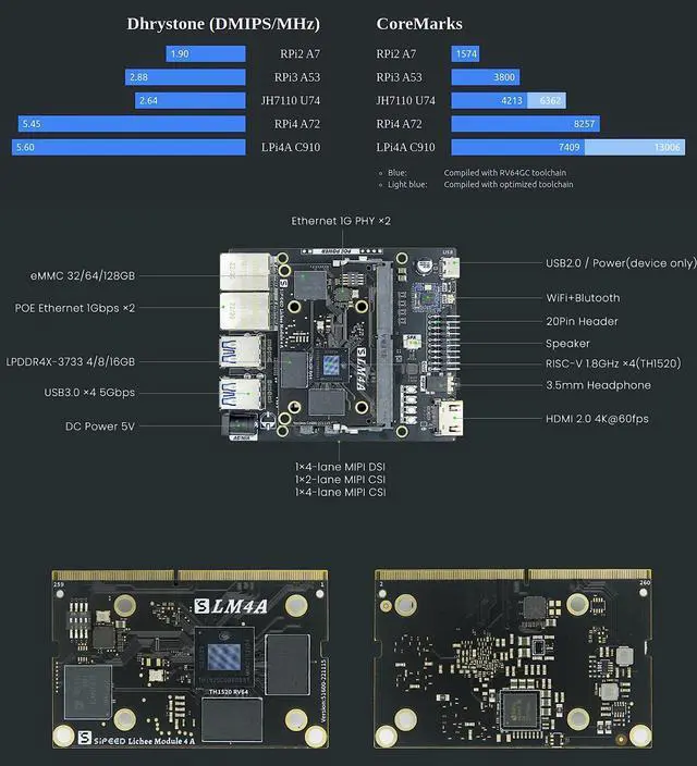 [Open Source Environment] LicheePi 4A IoT development board has Powerful Performance, Open Source Application Environment, Rich Software Ecology and Faster Native Compilation, more possibilities for Lichee Pi 4A. Faster than Raspberry Pi 4B mini computer and in some cases.