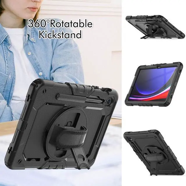 Gylint Case for Samsung Galaxy Tab S10 FE / S9 / S9 FE 5G Tablet 11 inch Case, with Screen Protector, Hand Strap, Shoulder Strap, 360° Rotating Stand Black