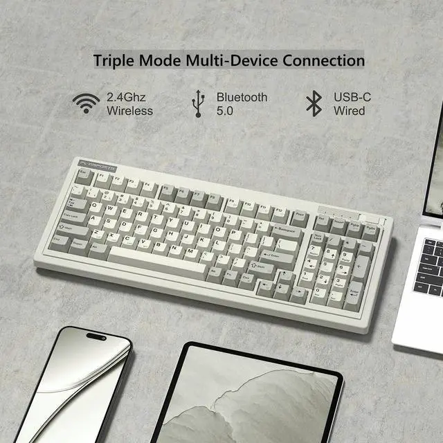 Triple Mode Multi-Device Connection&4000mAh BatteryWireless Keyboard support both Bluetooth and 2.4GHz connection for wire-free typing, while still offering a stable and reliable cable connection by the type-C port. By offering all three modes of connection, it can be used for different purposes depending on whether convenience or stability is the priority in the task you are handling.