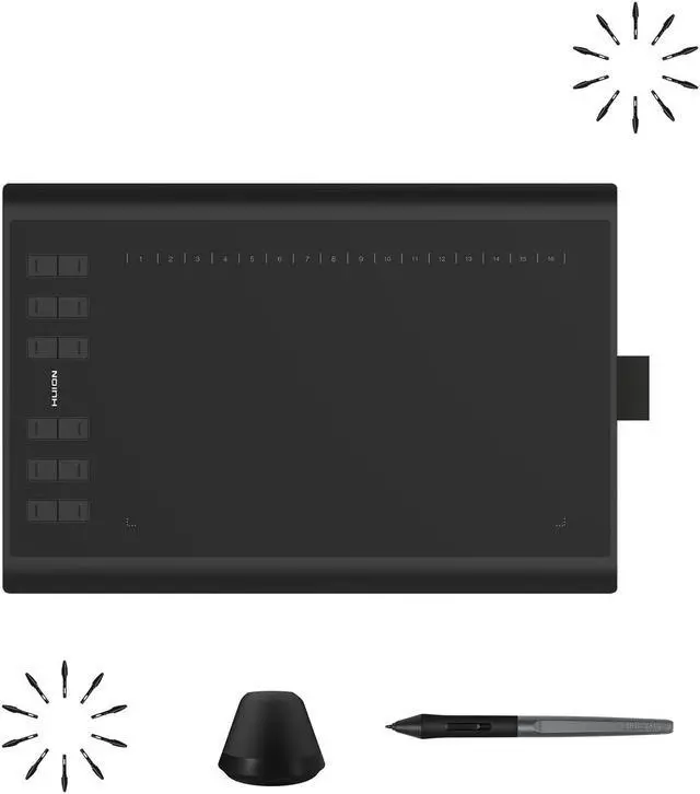 HUION Inspiroy H1060P Graphics Drawing Tablet with 8192 Pressure Sensitivity Battery-Free Stylus and 10 Pack Replacement Nibs PN04