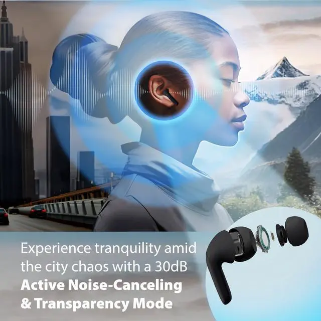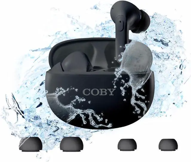 Coby Active Bluetooth Wireless Noise Cancelling Earbuds, 30db, USB C Charging Case, IPX7 Waterproof Wireless Earbuds, Transparency Mode, Smart App with Location Tracking, Customizable EQ (Black)