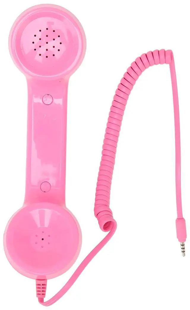 Retro Telephone Handset, 3.5 mm Cell Phone Receiver Mic with Volume Control Microphone Speaker Handheld Receiver for Cell Phone 9 Feet Coiled Cord Microphone for Mobile Phones Computers (Pinkcolor)
