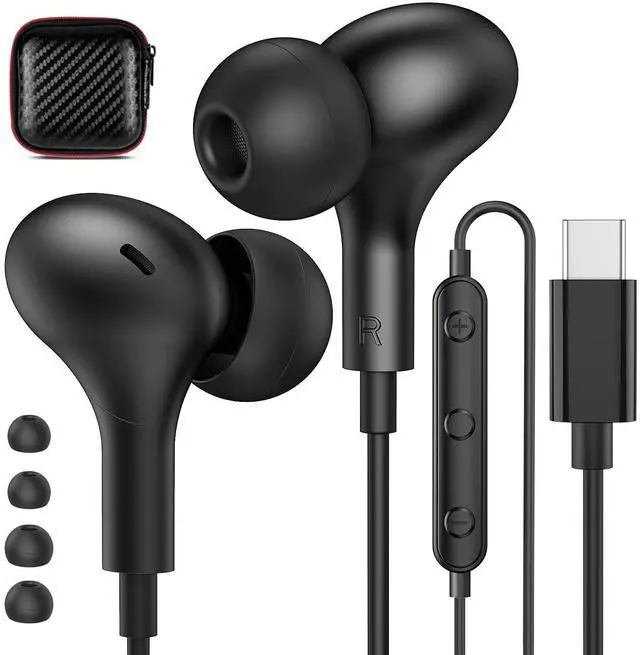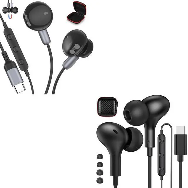 2-Pack USB C Headphones Black for iPhone 15 Pro Max, Samsung Galaxy, Googl Pixel, OnePlus, Huawei P70 60 50 40 30 Pro