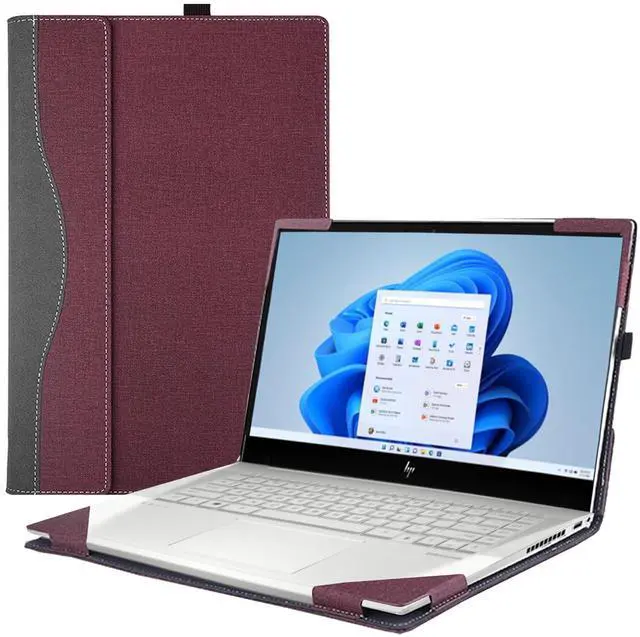 VEVOOD Laptop Cover for HP Envy x360 Laptop 15t /15z-XXX/ 15-ed/15-er/15-ep/15t-es100... All Inclusive Drop Case 15.6" PU Leather Inside Pocket Cover ( 15.6 inch, red Wine)