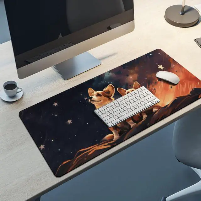 QEOPGNE Akita Corgi Dog Gaming Mouse Pad Large Starry Night Dog Mousepad Aesthetic Animals Cute Puppy Desk Mat for Keyboard and Mouse Mat Non-Slip Rubber Desk Pad 35.4 x 15.7 Inch
