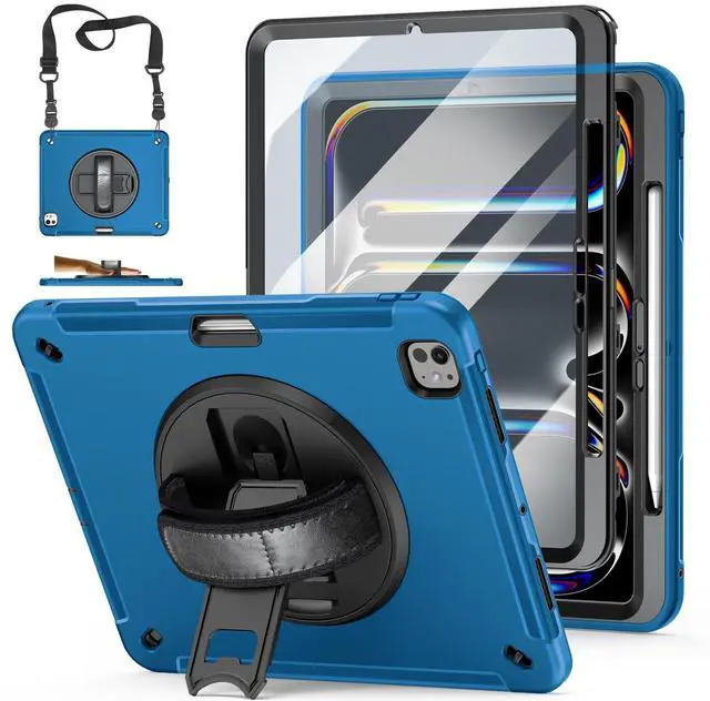 Case for iPad Pro 13 Inch 7th Generation 2024: Military Grade Cover for iPad Pro 13" (M4) W/Screen Protector - Stand - Handle - Shoulder Strap - Pencil Holder- Blue