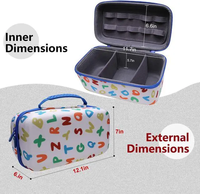 PERFECT FIT: We've specifically designed the case to fit your Tonie Toniebox Audio Player Starter Set, Audio Toy Figurine and Tonies Kids Headphones. OUTER DIMENSIONS: 12.1" L 7" W 6.1" H.