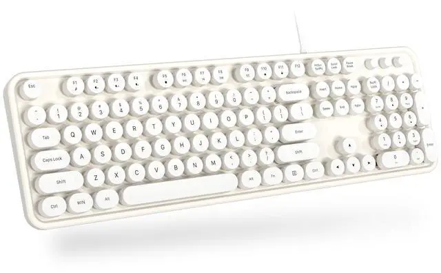 Retro Wired KeyboardCute round keycaps, crisp and sweet sound, perfect knocking feel, let you find the feeling of a retro typewriter.