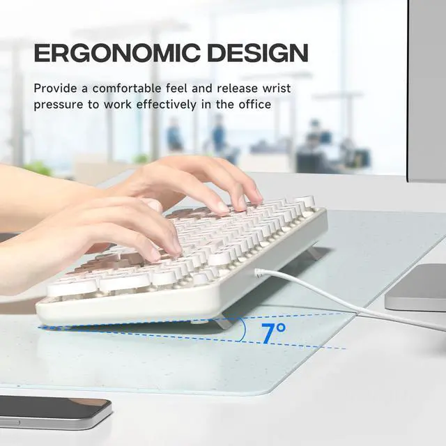 Upgrading TechnologyThe keycaps are made of ABS environment-friendly plastic characterized by ergonomic design and comfortable feel.