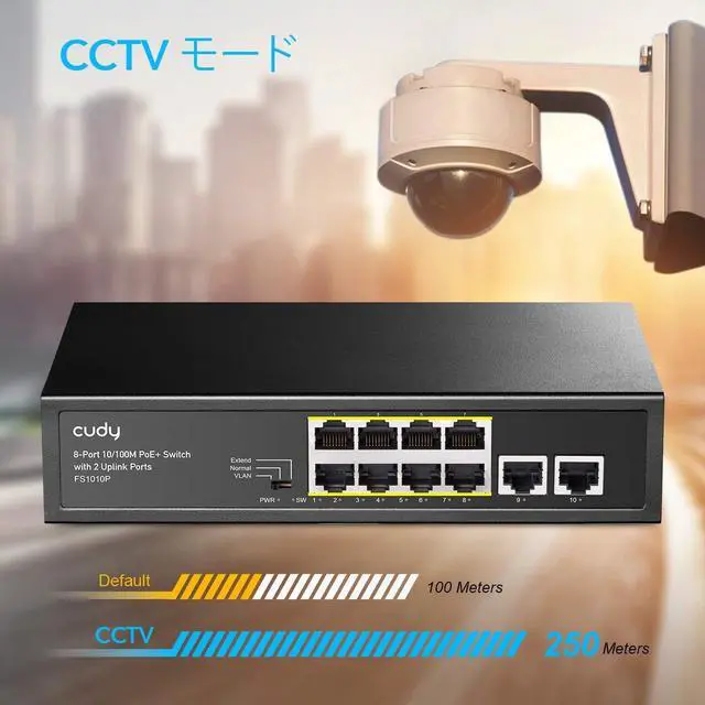 CCTV function support remote power and data feeding up to 250m long distance, which is easy to expand network via ethernet cable to somewhere without power supply but need fix device such as IP Cameras.