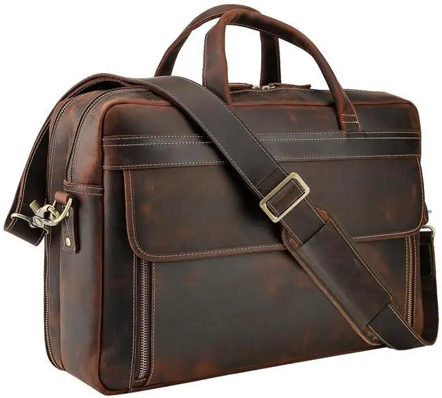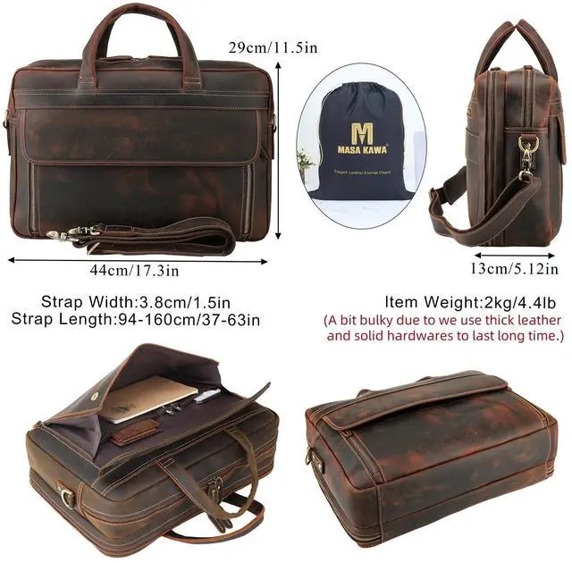 Quality Material Made of 2mm thick full grain cowhide leather processed with crazy horse leather technology, this messenger bag is featured with outstanding durability and weathered vintage look. The leather grows brighter and shiny with age. That's why many people become followers of crazy horse leather bag. Delicate stitching and heavy duty hardware ensures its long use time