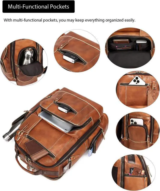 This soft backpack is crafted in our refined full grain cowhide leather. Dimensions: 17"(H)x7.8"(W)x13.7"(L), weight: 3.9 lb, 24L.