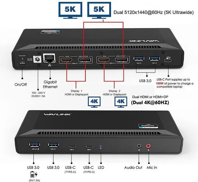 Powerful Charging Capability: With a 100W charging capability, this docking station can charge your laptop and other connected devices quickly and efficiently.