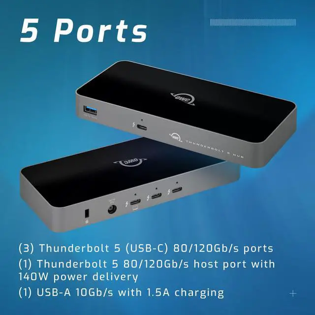 Easy Port Expansion: Adds more universally compatible Thunderbolt 5 (USB-C) ports to a Mac, PC, or iPad Pro to greatly expand device connectivity possibilities and productivity; Thunderbolt Certified: Built-in OWC reliability and dependability for Mac and Windows