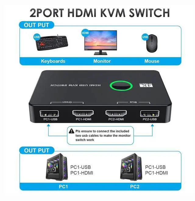 cablecc KVM USB 2.0 & HDMI 4K Switch Selector Dual PCs Sharing Monitor HDTV USB Port Keyboard Mouse Scanner Printer