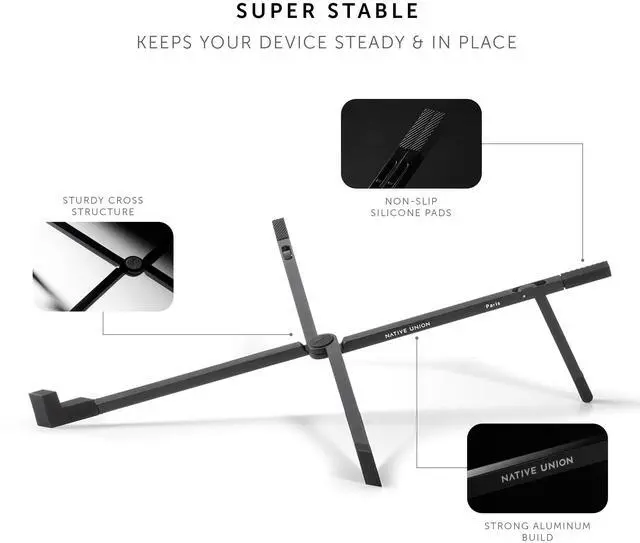 Native Union Fold Laptop Stand Ultra-Slim Foldable & Portable Laptop Stand Ergonomic & Optimized Viewing Angle for 13 to 16 Inch MacBooks & Laptops, 10 to 16 Inch iPads & Tablets (Black)