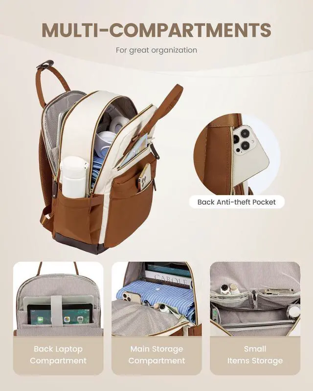 LARGE CAPACITYLaptop backpack has a total of 5 compartments and 17 pockets, which can provide great organization and storage for your computer, A4 folder, books, clothes, etc.