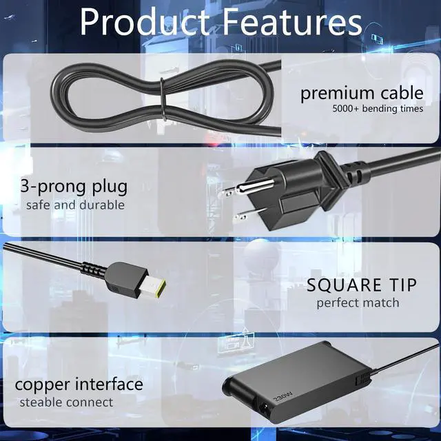Hodeay 230W Slim Tip AC Adapter Compatible with Lenovo Legion 5i Gen 9 Legion Slim 5 Gen 9 (16 AMD) ThinkBook 16p Gen 4,Compatible P/N: ADL230SCC3A, SA10R16890, 02DL144., Black