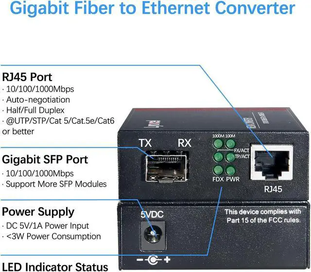 What's Included: 2pcs Gigabit Media Converter; 2pcs SFP Bidi LC Single Mode Transceiver; 2pcs 5V 1A Power Supply, 100V-240V; 1 x User's Manual. Can be used in multiple work environments, such as home, business, security monitoring systems, campus networks, and more.