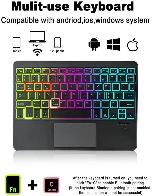 Detachable keyboard + Rainbow BacklightThe keyboard can be removed and used alone,Magnetic adsorption is more convenient. The built -in rechargeable battery does not need to replace the battery.Rainbow backlight and breathing light mode switch, allowing you to type easily in the dark environment.The first row of the