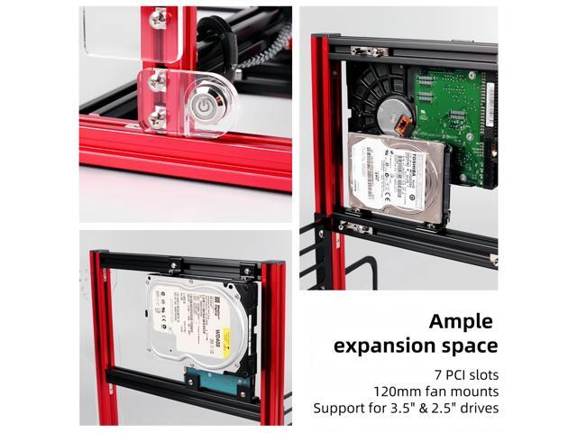 Open Air PC Case features 7 PCI slots and support for both 3.5" and 2.5" drives, along with 120mm fan mounts, providing ample space for expansion