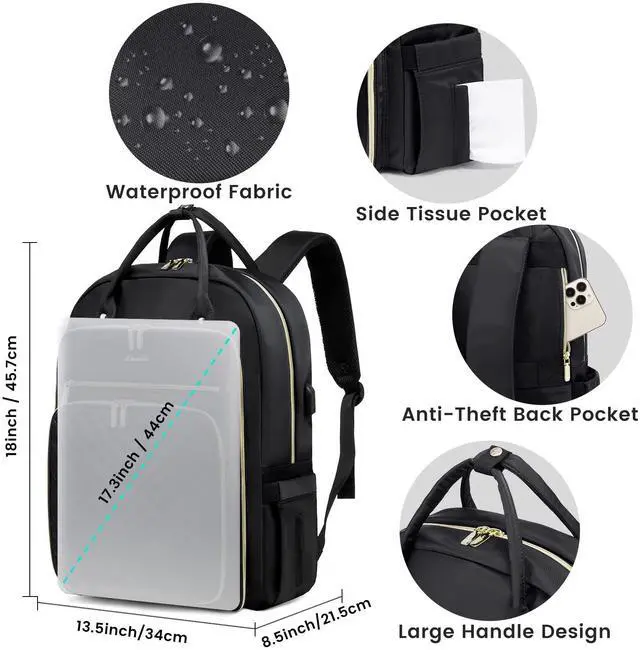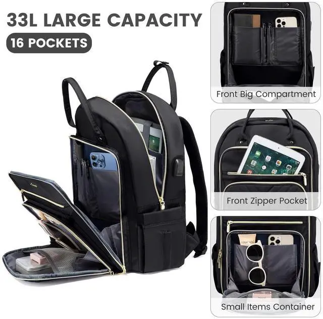 LOVEVOOK Laptop Backpack Women Teacher Backpack, 17.3 Inch Laptop Bag with USB Port, Waterproof Daypack for Work Travel, Black