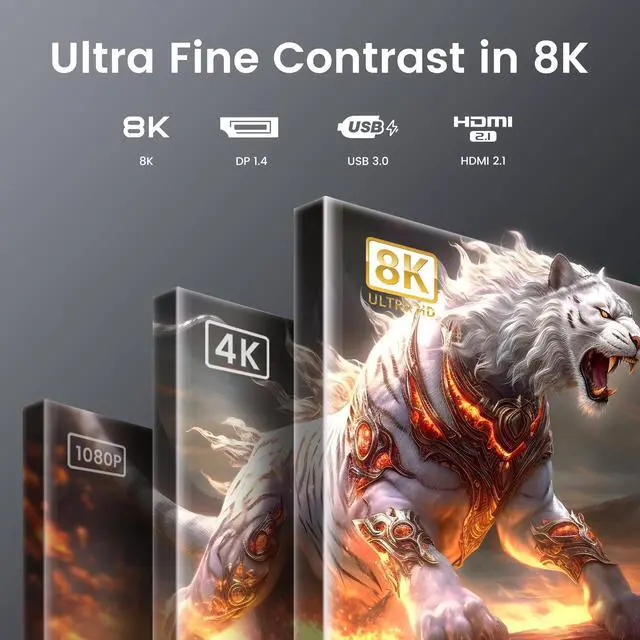 8K Ultra High Definition The dual monitor KVM switch delivers stunning 8K@60Hz and 4K@144Hz resolution, with backward compatibility for 4K@120Hz, 2K@144Hz, and 1080P@240Hz. The 2 computers 2 monitors switch supports connecting two different resolution sources and automatically recognizes the resolution when switching sources. (Note:If you want to realize 8K@60Hz, please make sure the signal source, monitor and cable support 8K.)