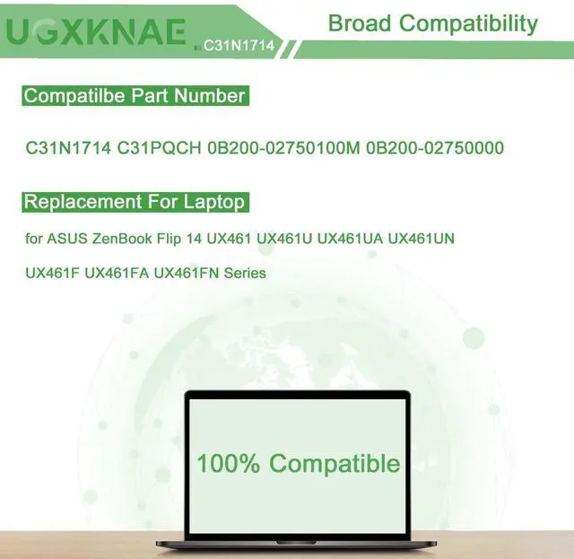 Compatible Laptop Models: Replacement for ASUS ZenBook Flip 14 UX461 UX461U UX461UA UX461UN UX461F UX461FA UX461FN Series