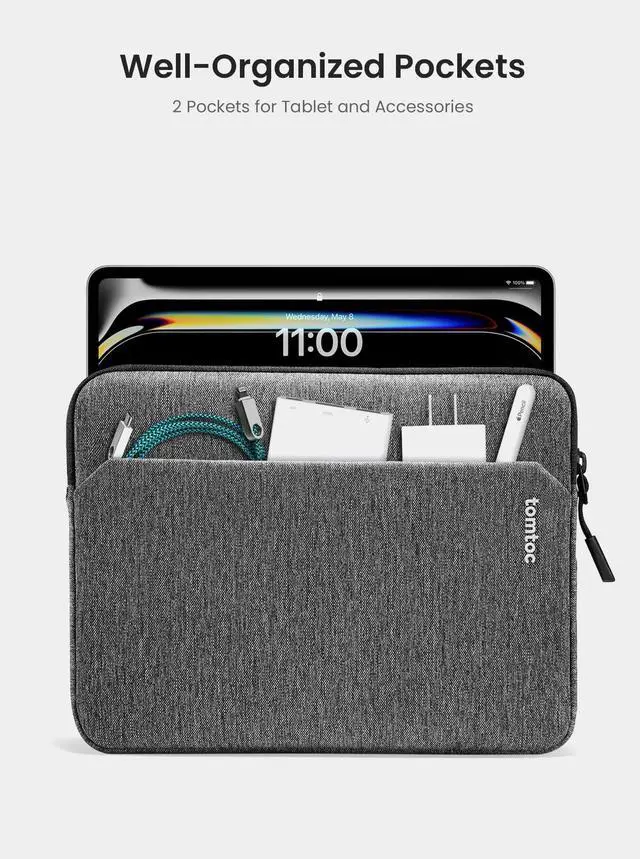 tomtoc 11 Inch iPad Case Tablet Sleeve for 2025 iPad A16, iPad Air M3&M2, iPad Pro M4,M2&M1, 10.9-inch iPad 10 & iPad Air 5th Gen, Galaxy Tab S9/A9+, Fits Magic Keyboard and Smart Keyboard Folio
